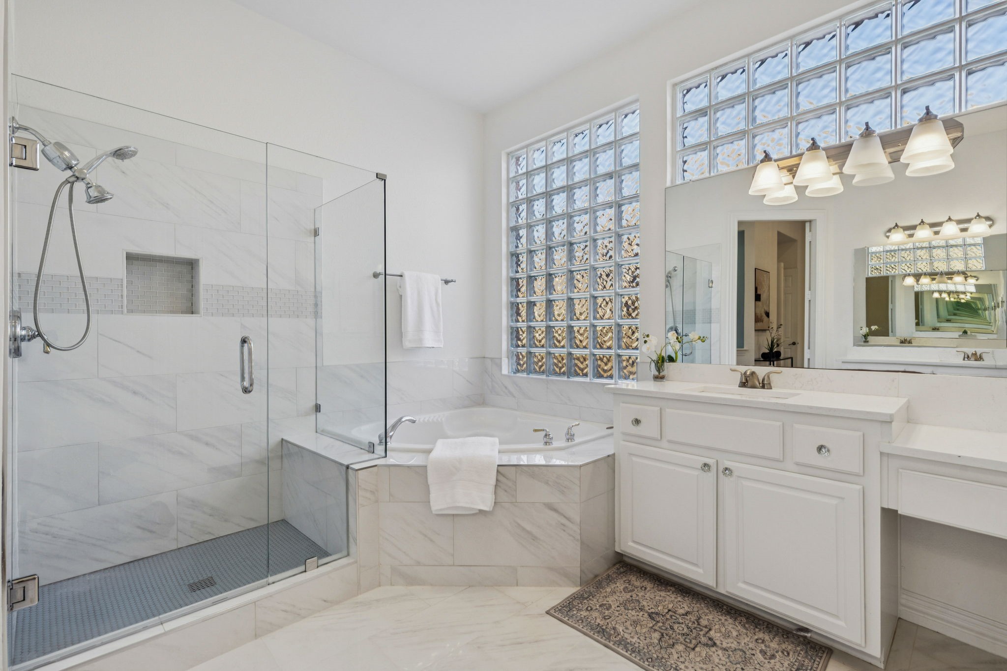 Indulge in a lifestyle of everyday luxury with this updated retreat. Your personal oasis awaits in the backyard, where resort-style living takes center stage with a sparkling play pool, soothing spa, and an outdoor living area complete with a fireplace for cozy evenings under the stars. Inside, the home is bathed in natural light, thanks to soaring windows that create an airy and inviting ambiance.