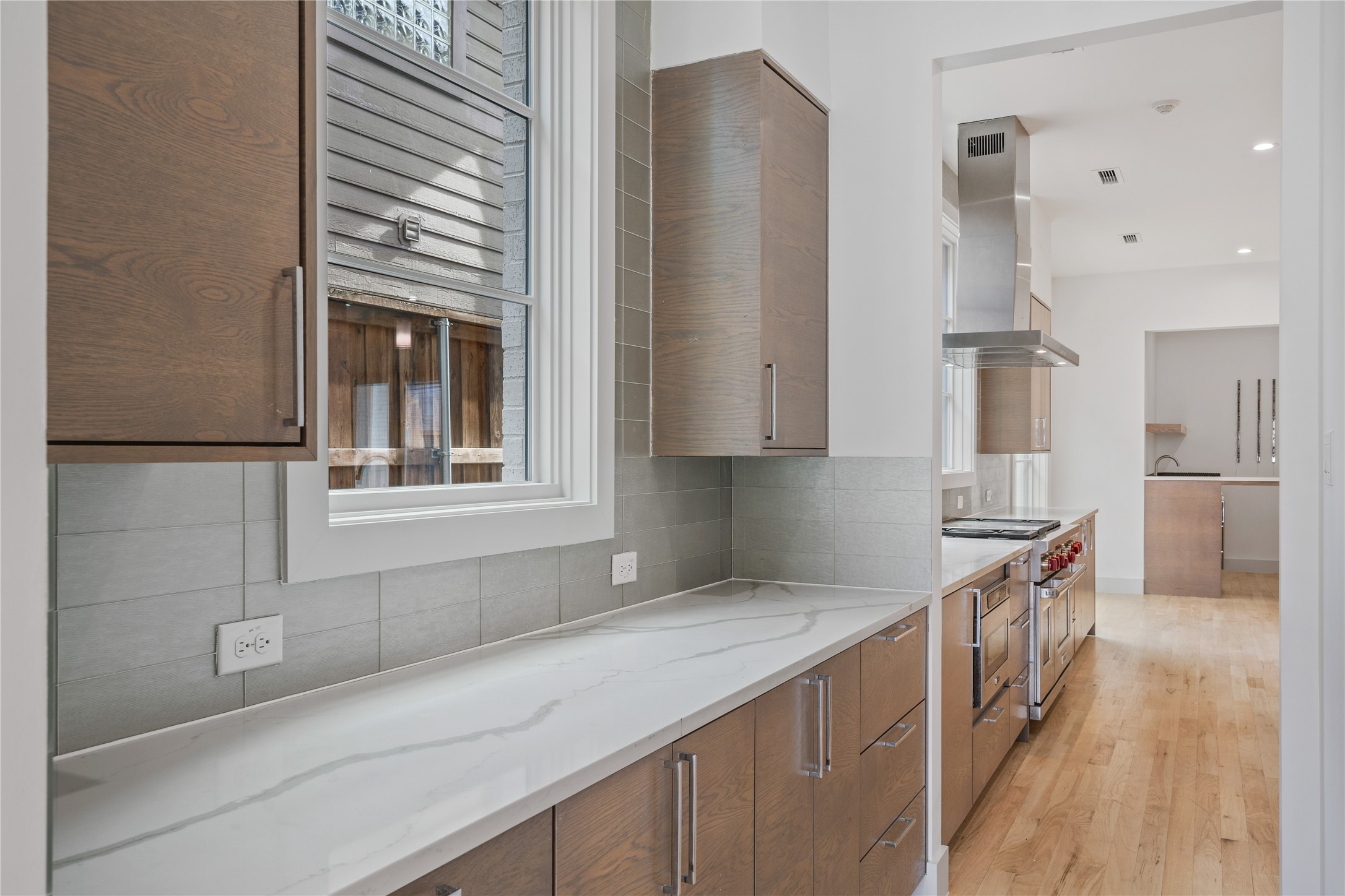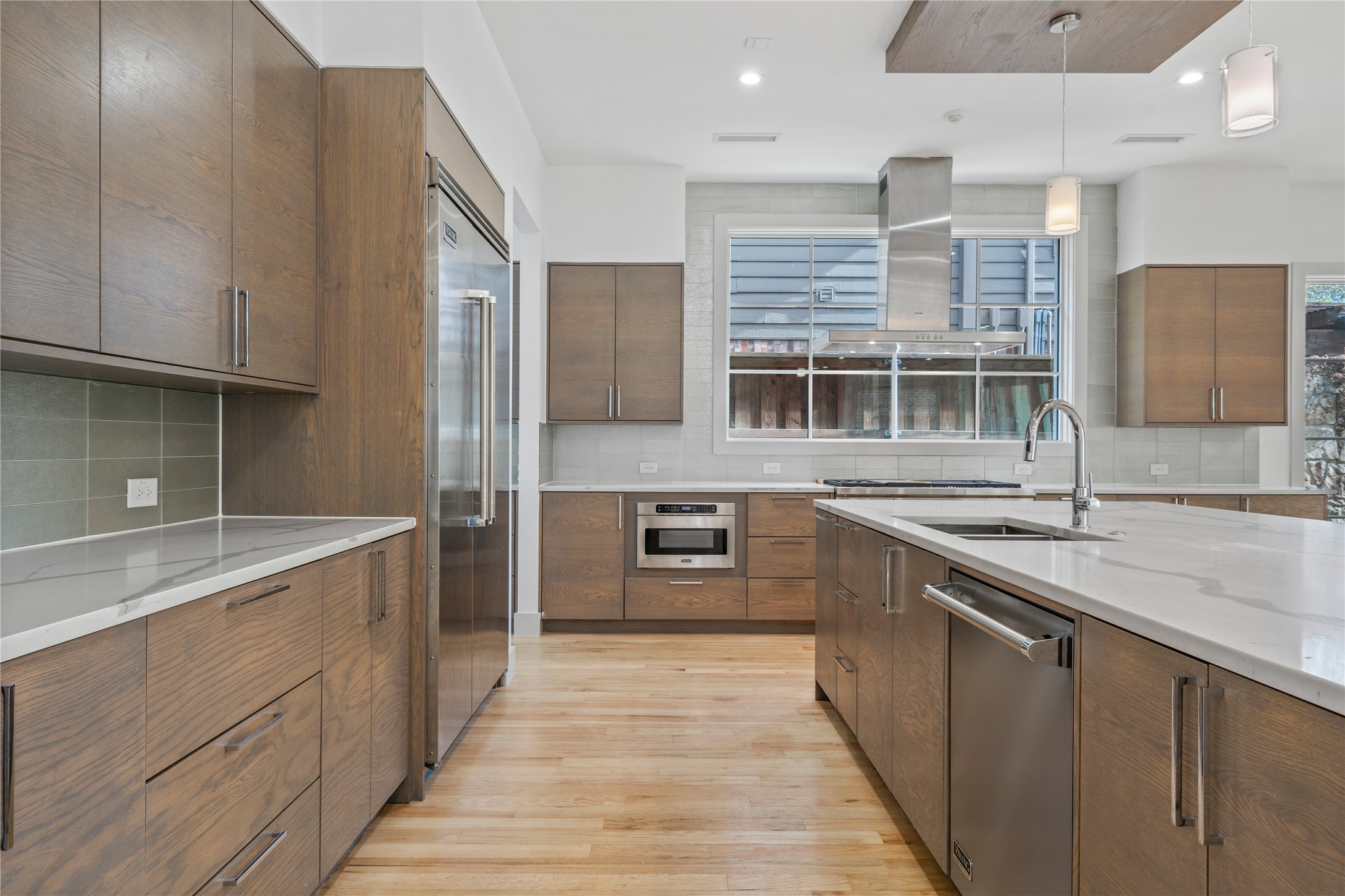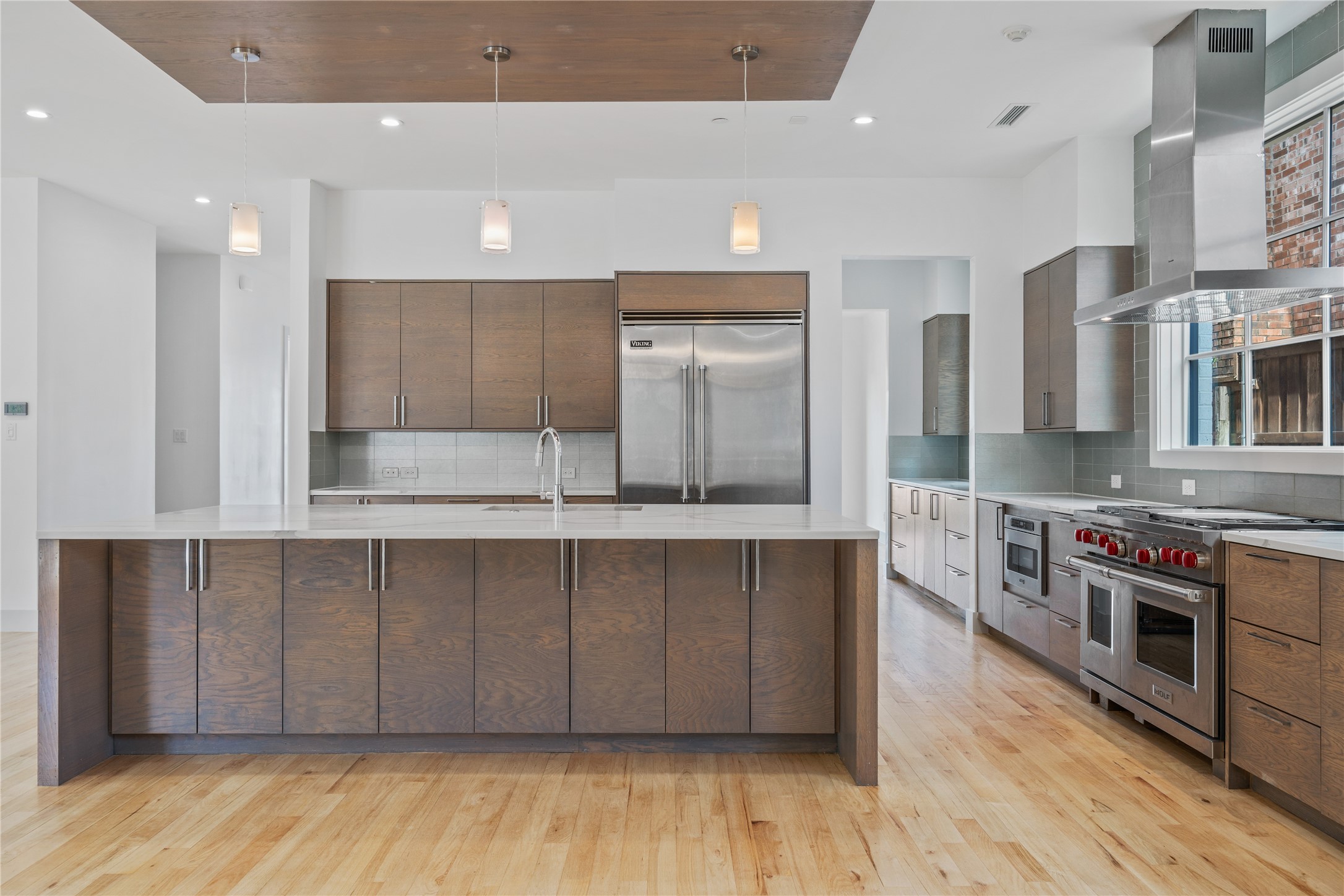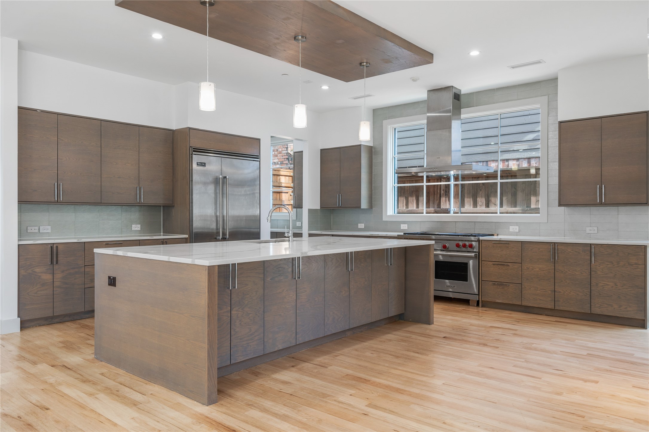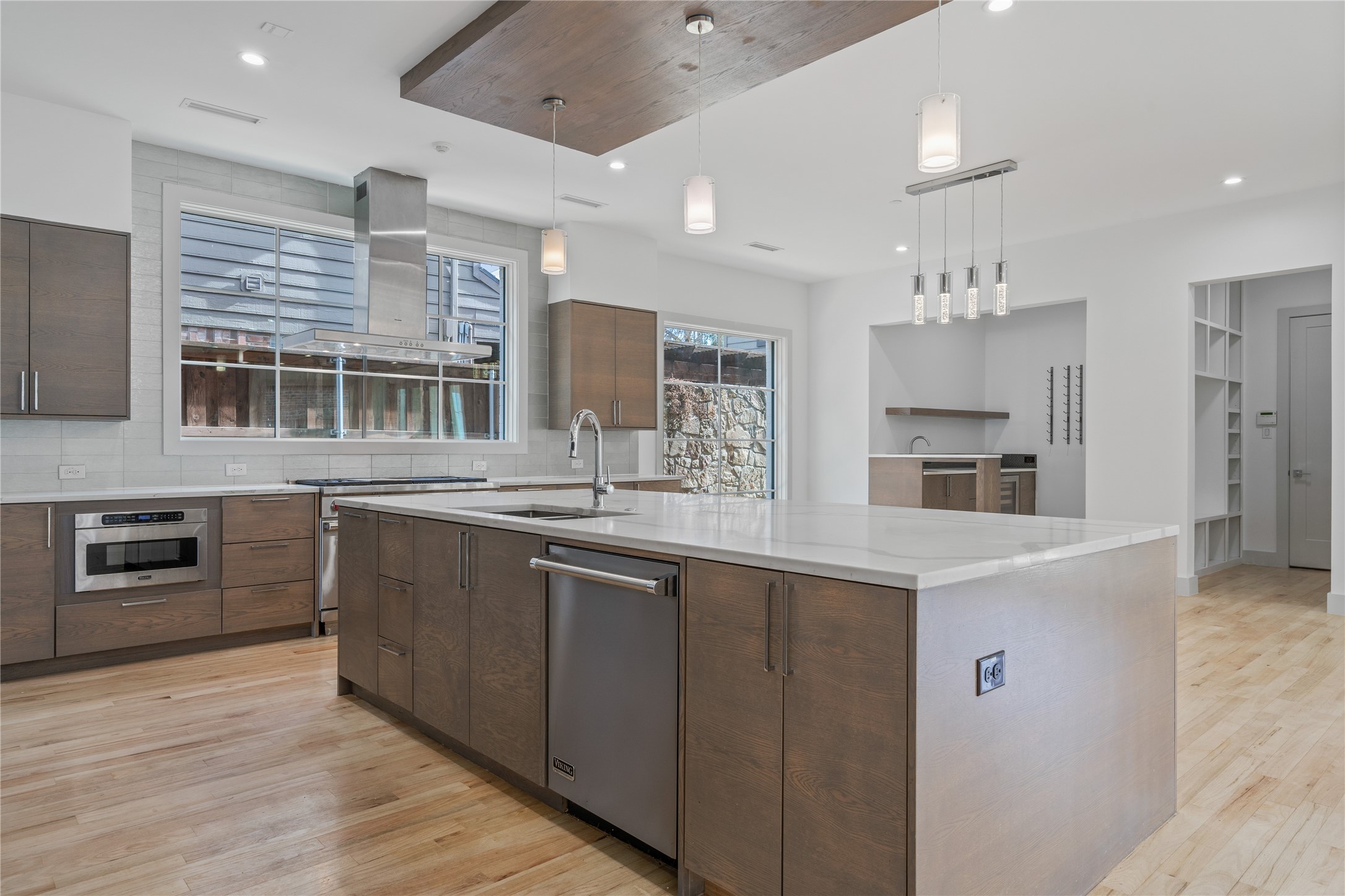 Step inside to discover a seamless layout tailor-made for both relaxation and entertainment. The huge kitchen is a chef's dream, featuring an expansive single-slab island, state-of-the-art Sub-Zero fridge, and a convenient wet bar and serving area. The great room, bathed in natural light from sleek slider doors, opens to a patio complete with a fireplace--perfect for gatherings and cozy evenings.
