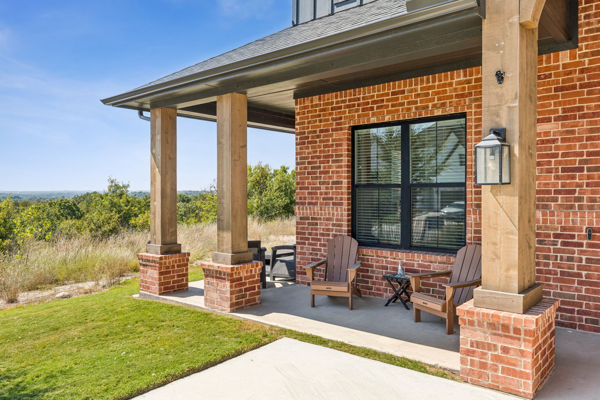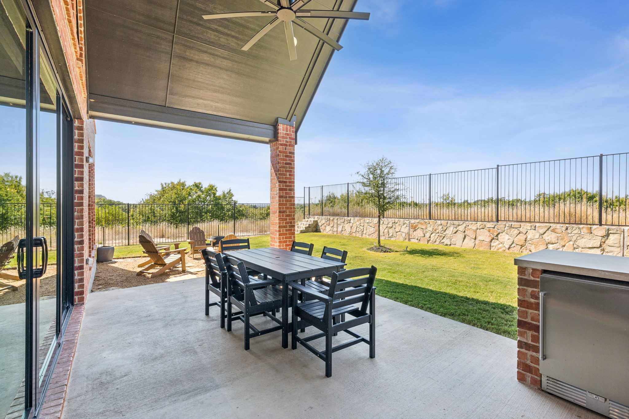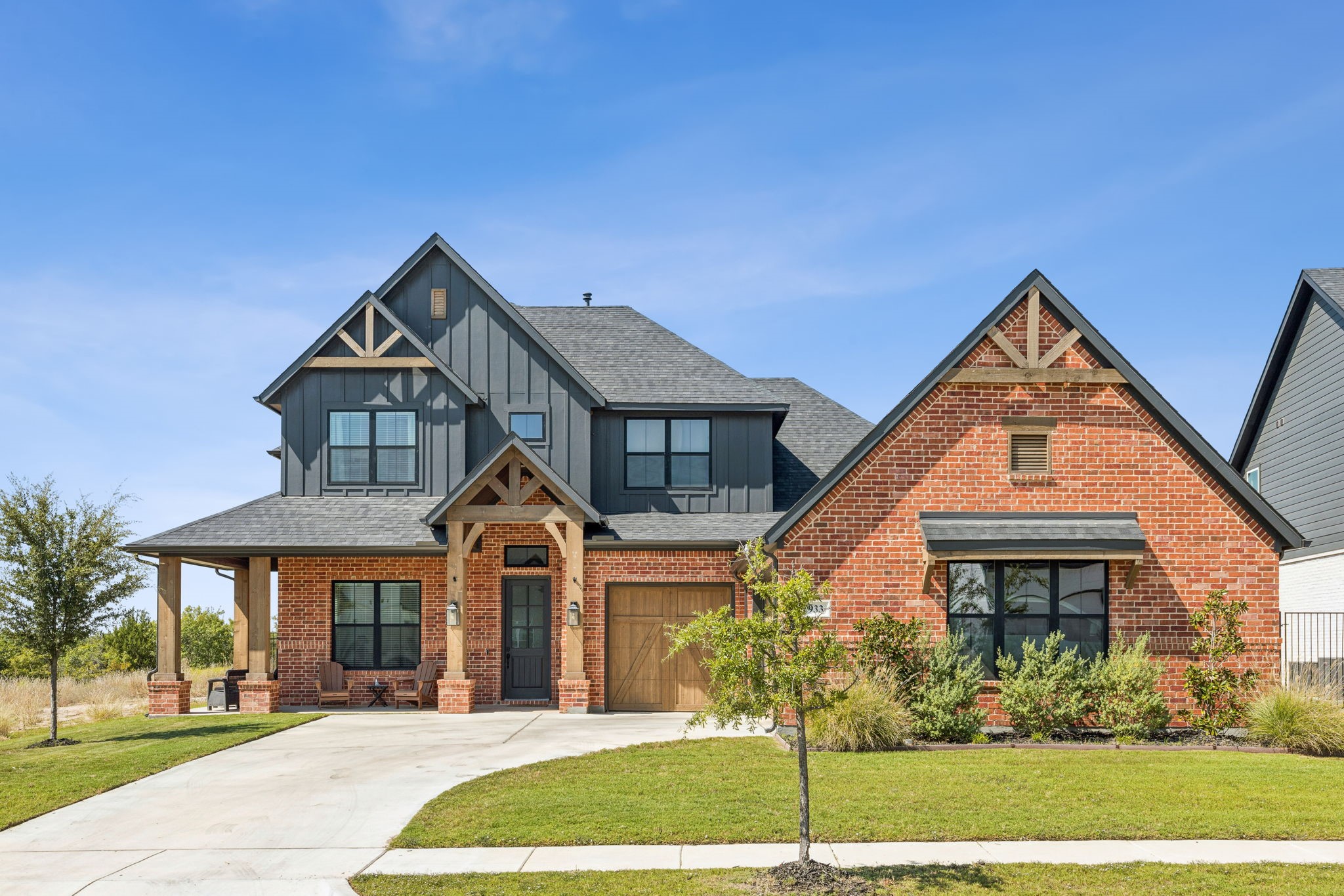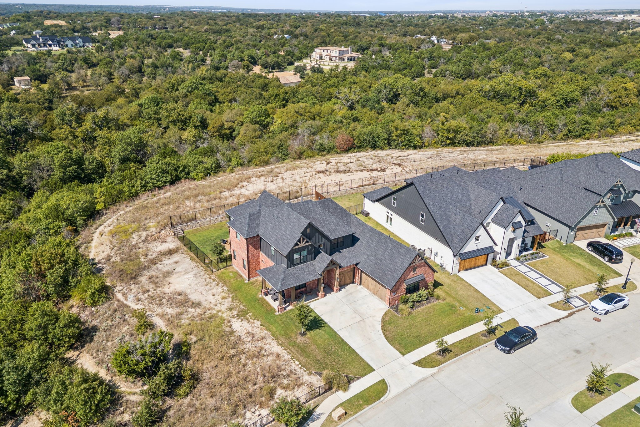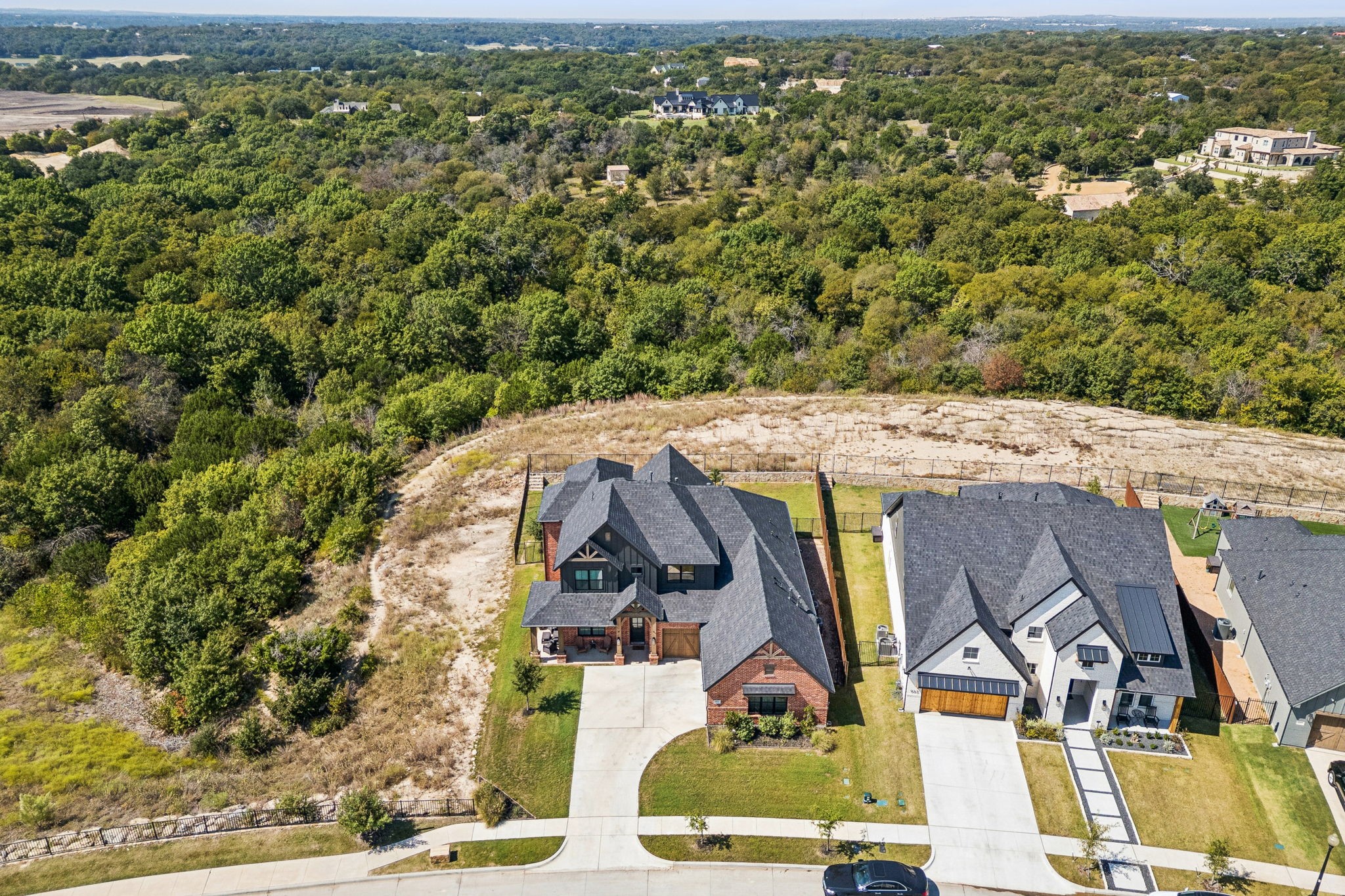 ONE-OF-A-KIND custom home, sprawling views of the Aledo countryside. Located in the highly sought-after Aledo ISD, this 5 Bedroom, 4 bath home is a unique opportunity to own a piece of serenity. The home features a custom floor plan designed to maximize the views of its 80-foot wide corner lot located on the Bluff above the popular Parks of Aledo trail system. Walk out your front or back door and jump on the 13+ miles of hiking & biking trails. Relax with your coffee or wine and enjoy the views on your wrap-around front porch or expanded back patio with a built-in outdoor kitchen. Entertainer's dream- with 3 living spaces, an eat-in gourmet kitchen complete with a 12-foot island, double-oven, and warming drawer. Relax in the primary bedroom suite with a fireplace, spa-like bathroom with an extra-large shower, and extended pass-through closet to a huge laundry room. Downstairs highlights are a study (bedroom) with full bath, media room with a 7.1 surround sound, formal living area with fireplace, and primary suite with a fireplace. There is plenty of closet space for storage, including a dedicated safe closet. Upstairs includes three bedrooms and two bathrooms, complete with a flex space for a game room. Finally, the home boasts an extra-large 800 sq. ft. 3-car garage with added space for a workshop, gym, or indoor driving range. This home has all the features a family needs or wants, so schedule a time to come see it today! In the community: sports complexes at the schools, a day care, a retirement home, grocery, drug store, quick dining and more.