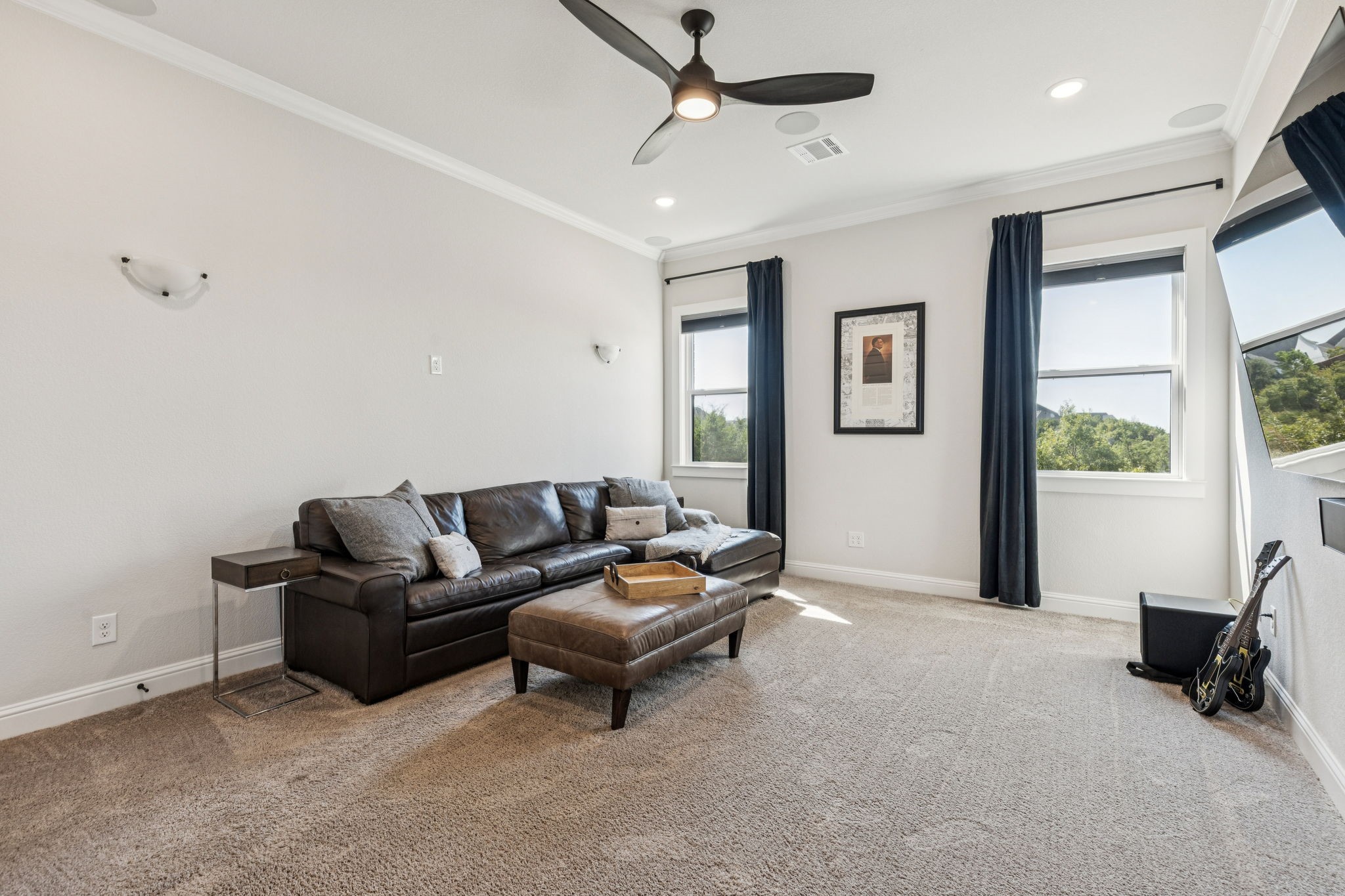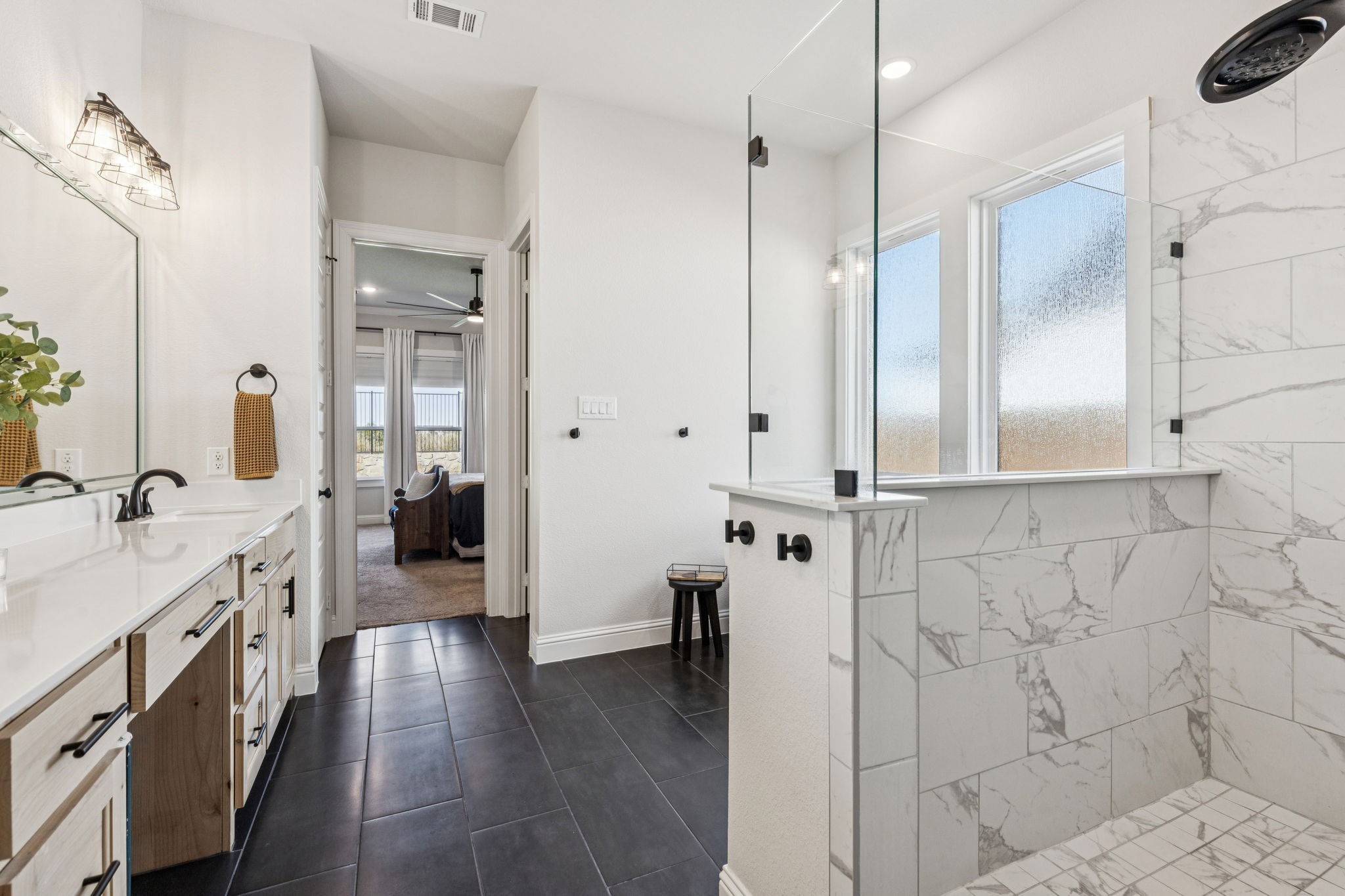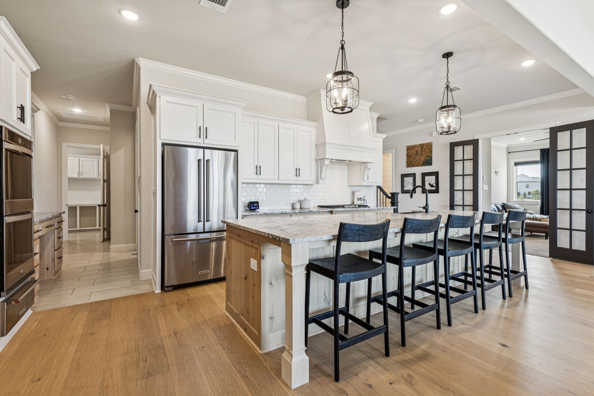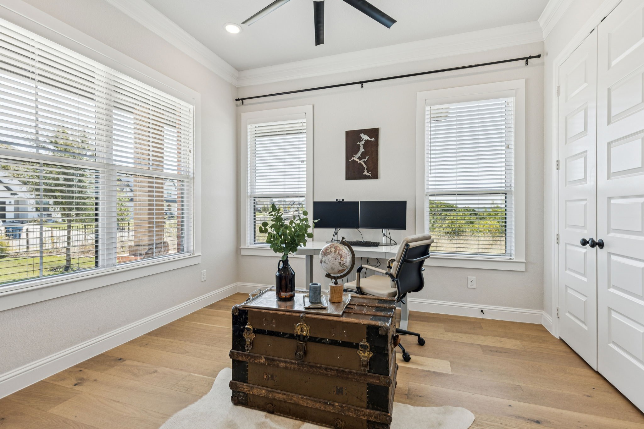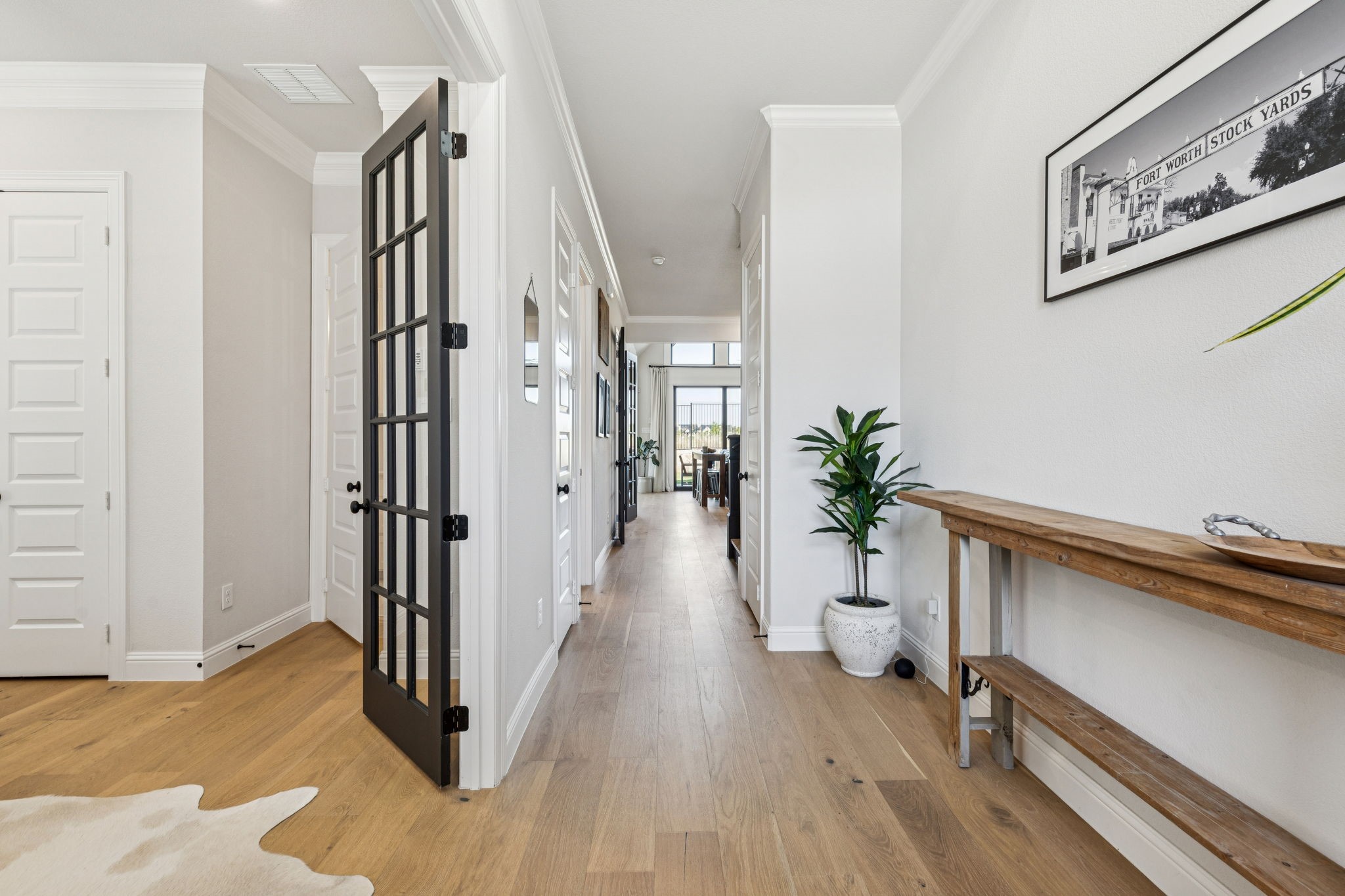 ONE-OF-A-KIND custom home, sprawling views of the Aledo countryside. Located in the highly sought-after Aledo ISD, this 5 Bedroom, 4 bath home is a unique opportunity to own a piece of serenity. The home features a custom floor plan designed to maximize the views of its 80-foot wide corner lot located on the Bluff above the popular Parks of Aledo trail system. Walk out your front or back door and jump on the 13+ miles of hiking & biking trails. Relax with your coffee or wine and enjoy the views on your wrap-around front porch or expanded back patio with a built-in outdoor kitchen. Entertainer's dream- with 3 living spaces, an eat-in gourmet kitchen complete with a 12-foot island, double-oven, and warming drawer. Relax in the primary bedroom suite with a fireplace, spa-like bathroom with an extra-large shower, and extended pass-through closet to a huge laundry room. Downstairs highlights are a study (bedroom) with full bath, media room with a 7.1 surround sound, formal living area with fireplace, and primary suite with a fireplace. There is plenty of closet space for storage, including a dedicated safe closet. Upstairs includes three bedrooms and two bathrooms, complete with a flex space for a game room. Finally, the home boasts an extra-large 800 sq. ft. 3-car garage with added space for a workshop, gym, or indoor driving range. This home has all the features a family needs or wants, so schedule a time to come see it today! In the community: sports complexes at the schools, a day care, a retirement home, grocery, drug store, quick dining and more.